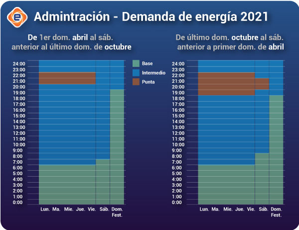 Comprendido esto, te invitamos a ver esta gráfica que muestra los momentos de administración de demanda durante en día, ya que los precios de la energía en CFE cambian según la hora, la época del año y el día de la semana. Existen tres tipos de tarifas: base, intermedia y punta. Se tiene la idea que la hora punta de demanda y de energía siempre es de 8:00 a 10:00 pm. pero podrán observar que no siempre es así.