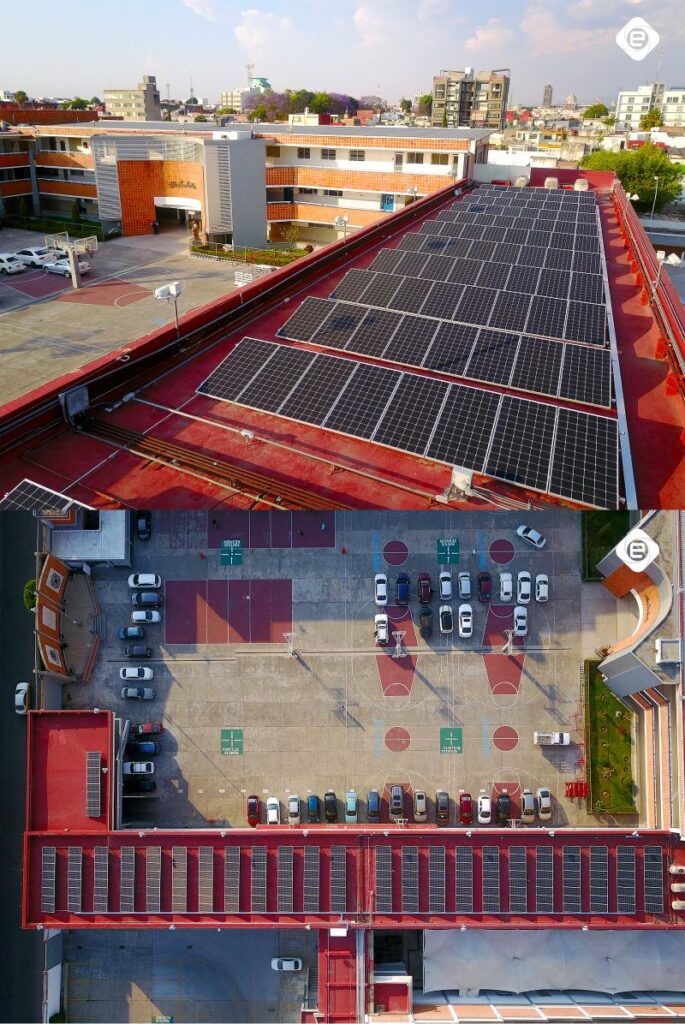 Proyecto solar realizado en el corazón de la Angelópolis poblana, dentro de una universidad jesuita de vanguardia. Se instalaron 1280 paneles solares (compite en potencia con proyectos industriales). Se montaron en lámina y losa plana, conectando transformadores en media tensión.